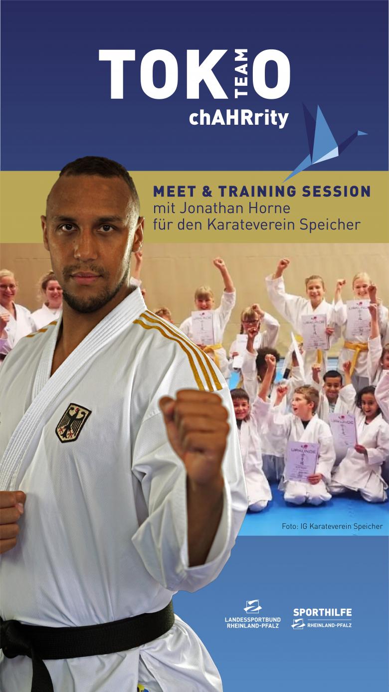 Im Rahmen des TOKIO TEAM chAHRity Adventskalenders vom Landessportbund und der Stiftung Sporthilfe Rheinland-Pfalz hatte der Karateverein Speicher eine Trainingseinheit mit dem erfolgreichen Karateka und neuem Bundestrainer des deutschen Karate Verbandes, Jonathan Horne, ersteigert. Am Samstag, den 7. Mai, war nun der lang ersehnte Tag gekommen. In einer knapp 1,5-stündigen Trainingseinheit zeigte der Olympia-Teilnehmer von Tokio in seiner Trainingsstätte in Kaiserslautern 20 Vereinsmitgliedern – darunter 15 Kinder – sein Können und beeindruckte auf ganzer Linie.