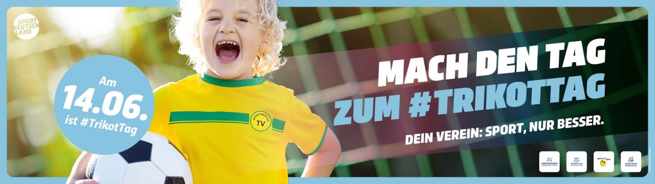 Am 14. Juni 2023 steht der Sportverein im Mittelpunkt. An diesem Tag – dem ersten bundesweiten Trikottag – sollen Sportvereinsmitglieder in ganz Deutschland Werbung für ihren Sportverein vor Ort machen, indem sie ihr Trikot tragen und damit die Verbundenheit zu ihrem Verein zeigen. Ein Tag, der in Rheinland-Pfalz in den vergangenen Jahren vom Landessportbund und den regionalen Sportbünden Rheinland, Pfalz und Rheinhessen erfolgreich praktiziert wird, soll nun auch bundesweit Durchschlagskraft entwickeln.