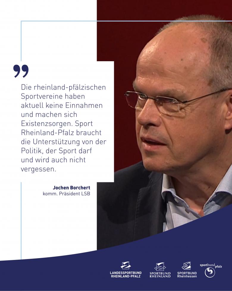 Diese Botschaft war dem kommissarischen LSB-Präsidenten Jochen Borchert trotz dem eigentlichen Thema "Olympia 2020" besonders wichtig: Sport Rheinland-Pfalz, mit seinen vielen ehrenamtlichen Mitarbeitern in mehr als 6.000 Vereinen, braucht in Zeiten von ausfallenden Einnahmen durch fehlende Veranstaltungen, die Unterstützung der Politik. "Der Sport darf und wird nicht vergessen" sagte Borchert mit Blick auf die aktuell ausgehandelten finanziellen Maßnahmenpakete der Bundes- und Landesregierungen der politischen Verantwortlichen.