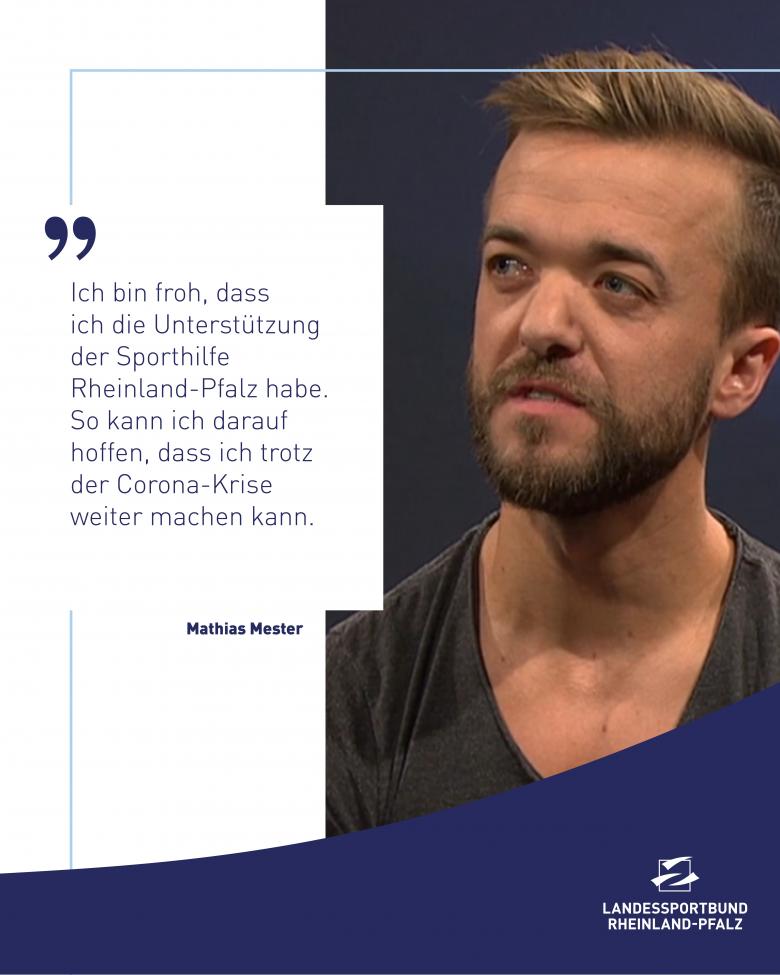 Mathias Mester zeigte sich konkret angesprochen auf seine persönlichen Sorgen anlässlich der ausbleibenden sportlichen Wettkämpfe dankbar gegenüber der finanziellen Unterstützung der Stiftung Sporthilfe Rheinland-Pfalz und versicherte, dass er auch bei einer Verschiebung der paralympischen Spiele sein Ziel "noch einmal bei den Spielen anzutreten" erreichen möchte.