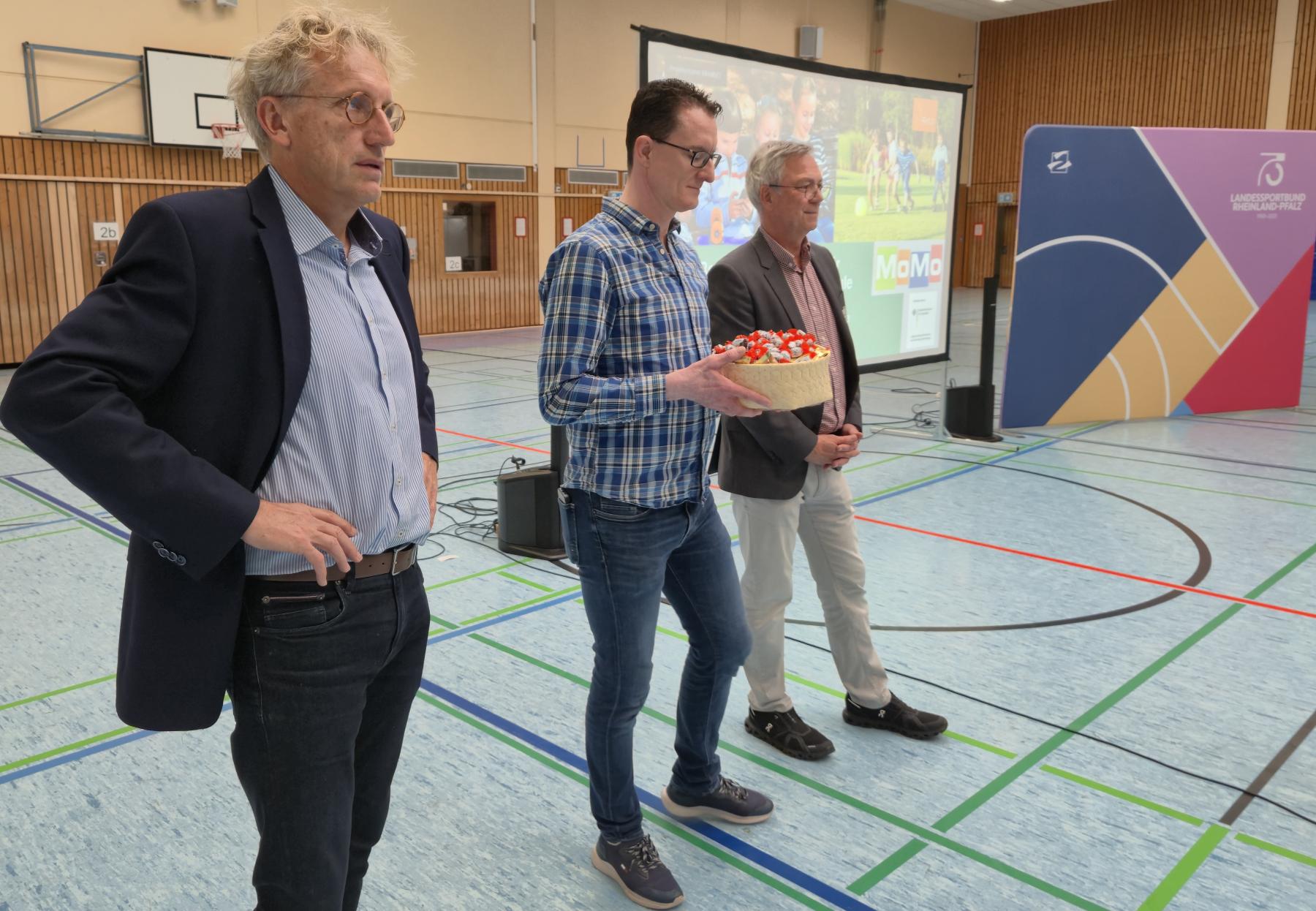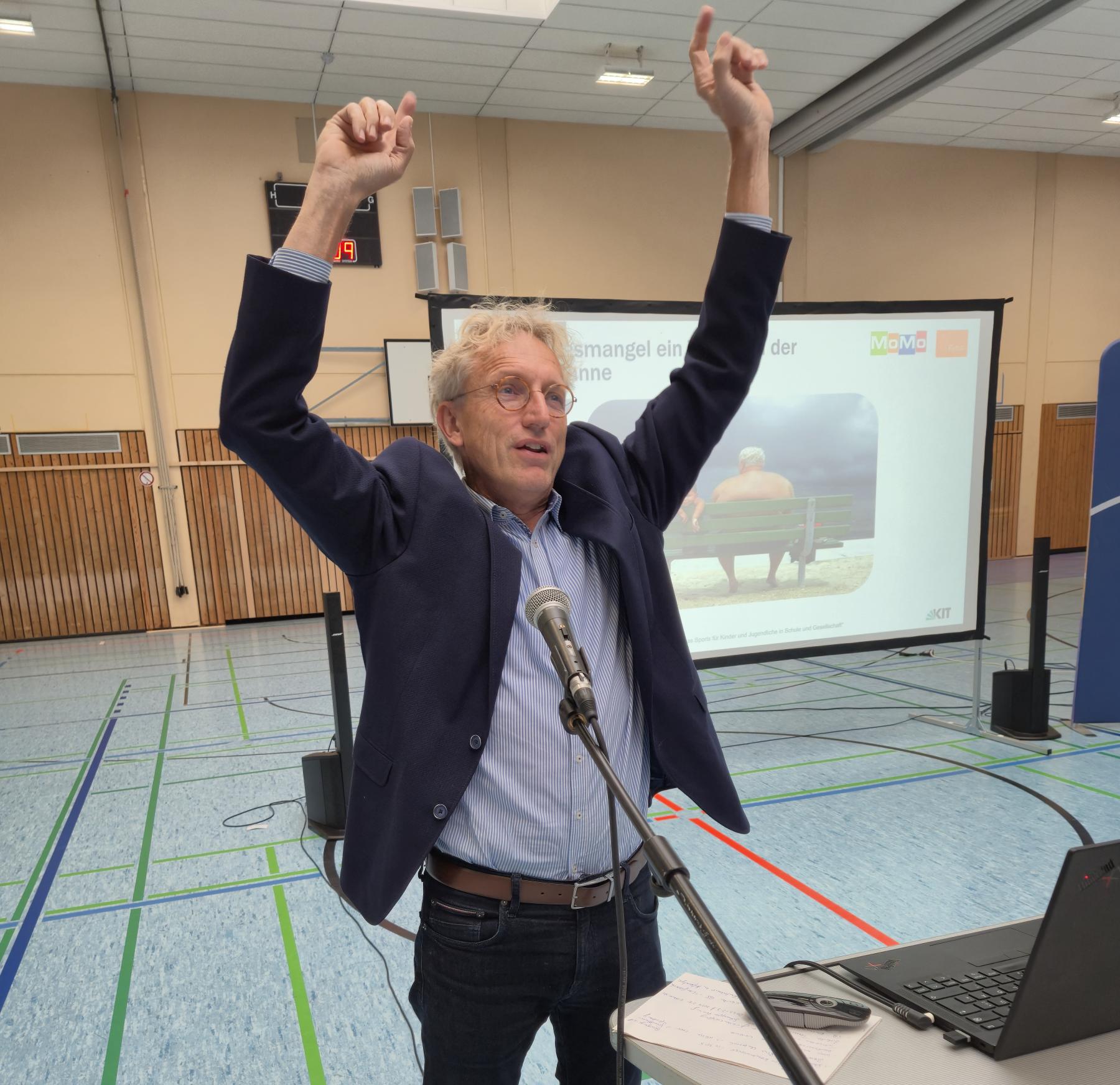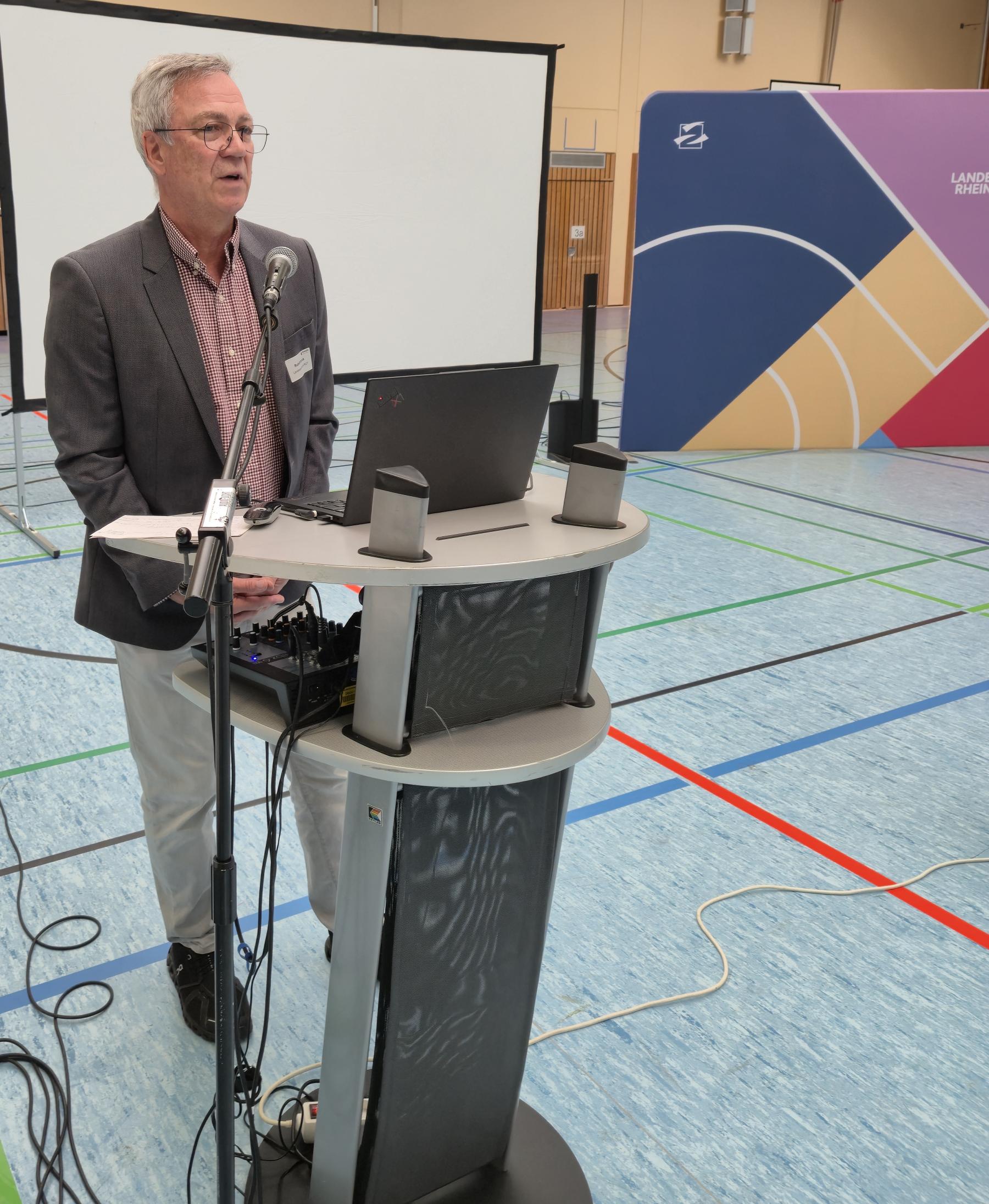 Gemeint war der Karlsruher Sportwissenschaftler Prof. Alexander Woll, der den sportbegeisterten Pädagog*innen im Rahmen seines Impulsvortrags über die Bedeutung des Sports für Kinder und Jugendliche in Schule und Gesellschaft Argumente mit wissenschaftlicher Evidenz an die Hand gab. „Jede entwickelte Gesellschaft ist eine Bewegungsmangelgesellschaft“, sagte Woll, der die Ergebnisse der die Ergebnisse aus der Motorik-Modul-Längsschnittstudie (MoMo) anschaulich präsentierte. „Wir sind zwar durchaus eine sportfreundliche Gesellschaft, aber keine bewegungsfreundliche Gesellschaft. Schon im Kindes- und Jugendalter halbiert sich die körperliche Aktivität.“ Mindestens eine Stunde pro Tag mit mindestens moderater Aktivität („Dass man wenigstens ein bisschen ins Schwitzen kommt“) sollte es laut WHO schon sein. Doch 80 Prozent der Kinder und Jugendlichen erreichen dieses Ziel nicht. „Die Gleichung hoher Medienkonsum bedeutet verringerte sportliche Aktivität ist so einfach nicht“, stellte der Forscher klar, der „die gute Zusammenarbeit in RLP zwischen den organisierten Sport und dem Schulsport“ lobte. „Die Digitalisierung bietet gerade für den Sportunterricht in der Schule neue Möglichkeiten – wir können stark davon profitieren.“